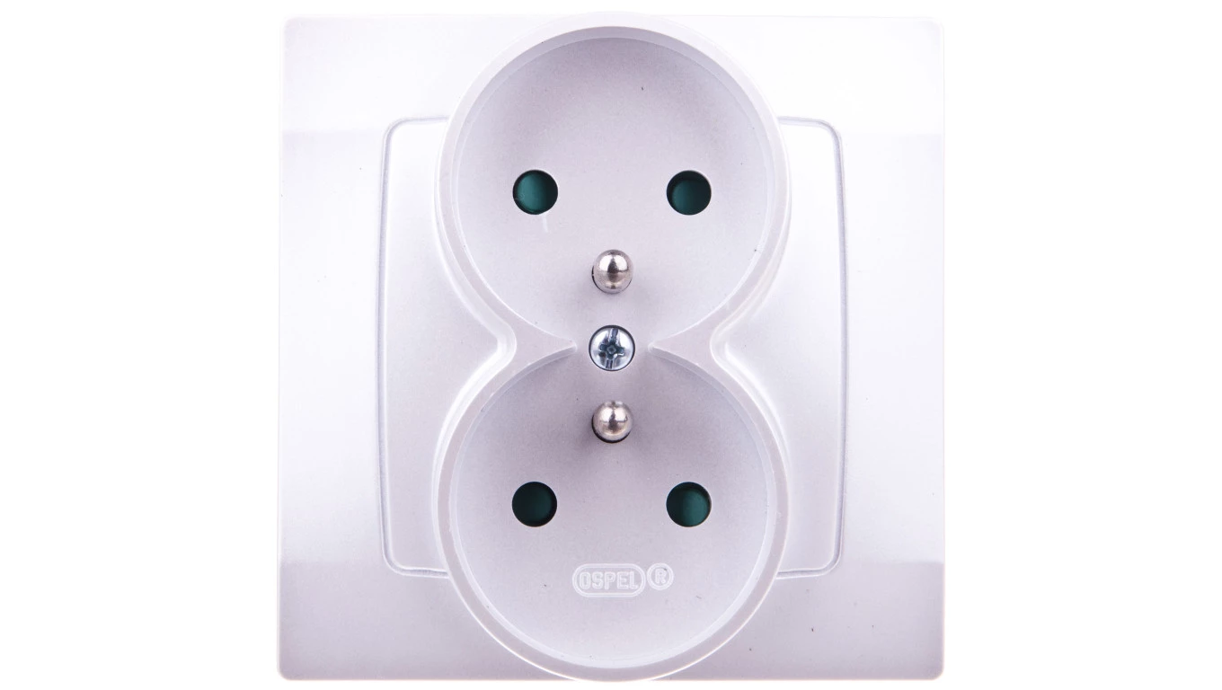 KARO Gniazdo podwójne z/u z przesłonami srebrny perłowy GP-2SZP/43