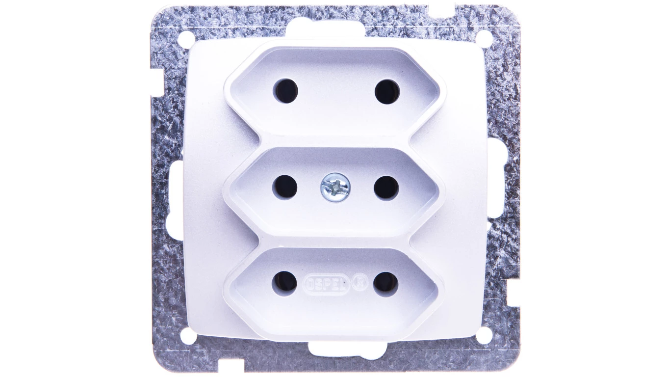 KARO Gniazdo potrójne b/u 2.5A EURO srebrny perłowy GP-3S/m/43
