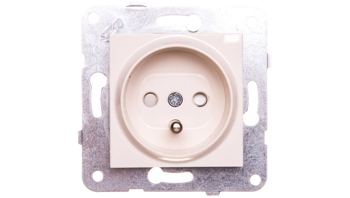 Karre Gniazdo Z Uziemieniem Z Przesłonami Styków, Kolor Krem / 90963745