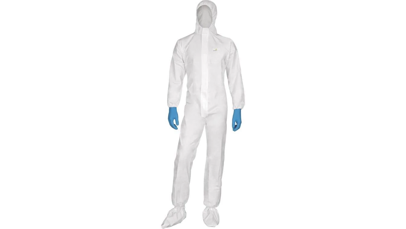 Kombinezon z kapturem obszytym gumką z polipropylen (70) i polietylen (30) kolor biały rozmiar M CORP DT115TM