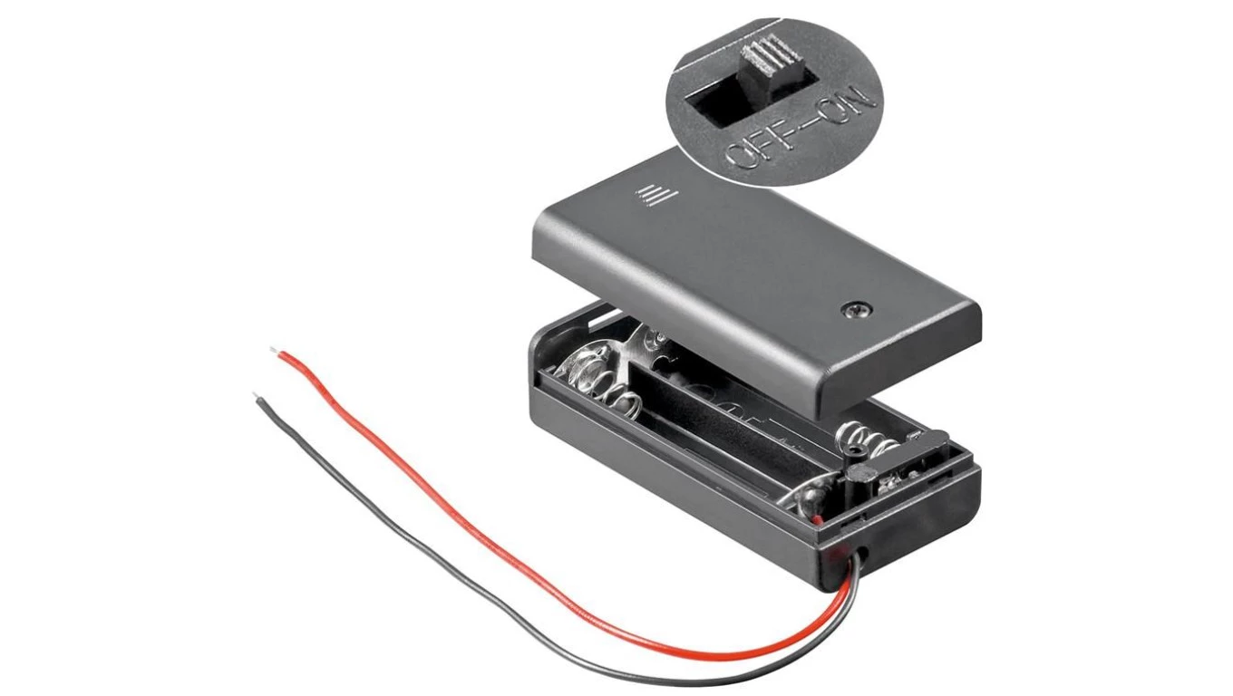 Koszyk na baterie 2x AA z przewodem i wyłącznikiem 12443