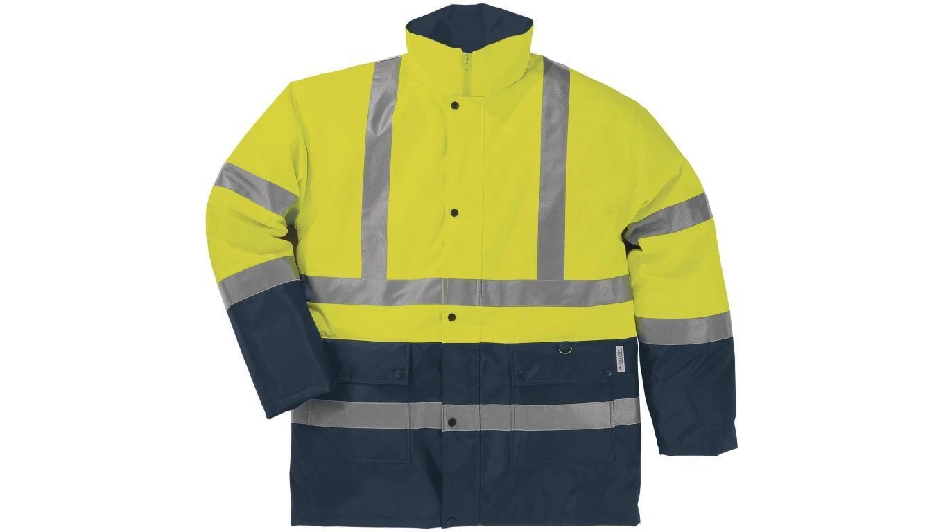 Kurtka ostrzegawcza z poliestru Oxford powlekanego PU i PVC kolor żółty fluo-granatowy rozmiar S CORP STRA2JAPT