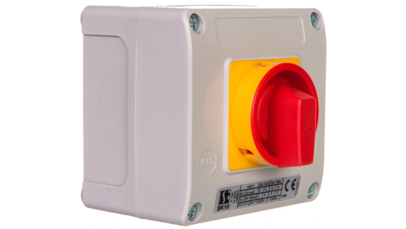 Łącznik krzywkowy 0-1 7P 10A w obudowie OB11 z czołem zamykanym żółto/czerwonym SK10-4.8240OB11ZC