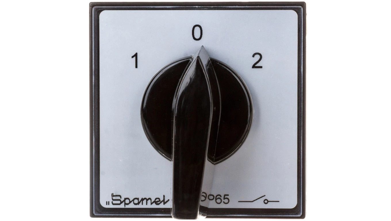 Łącznik krzywkowy 25A, rozłącznik 1-0-2 (4-biegunowy), mocowany do pulpitu, czoło szare, pokrętło czarne o numerze katalogowym SK25-4.8396\P03 w kategorii Wyłączniki i rozłączniki obrotowe, Wyłączniki, rozłączniki. Produkt wyprodukowany przez markę SPAMEL.