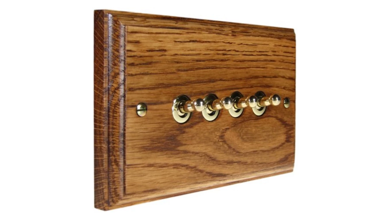 Łącznik uniwersalny schodowy poczwórny 10A 230V dźwigniowy 96x156mm - kolor ciemny dąb W-ET4.1MO
