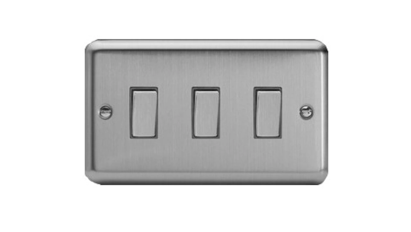 Łącznik uniwersalny schodowy potrójny 10A 250V klawiszowy 86x148mm - kolor stal szlifowana C-E3.1S