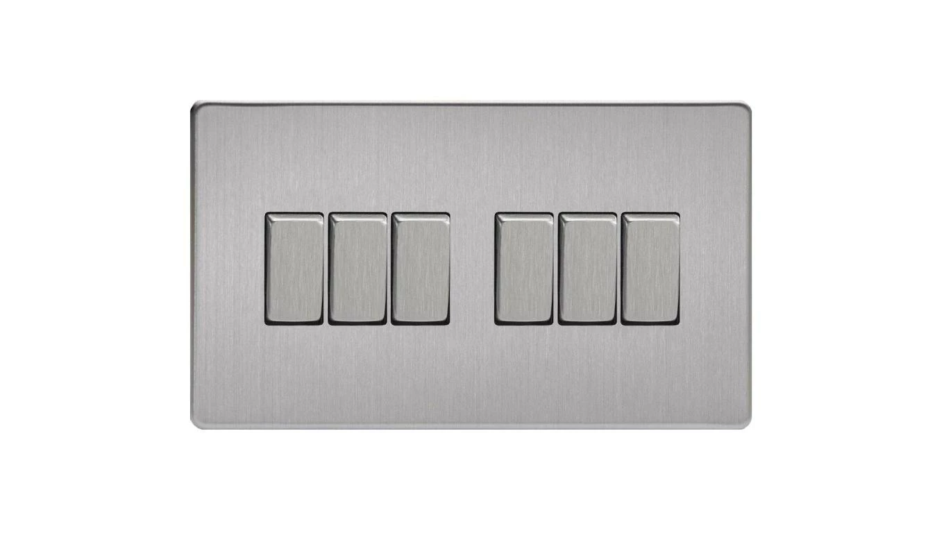 Łącznik uniwersalny schodowy sześciokrotny 10A 230V klawiszowy - kolor stal szlifowana METZ2E3.2S-D
