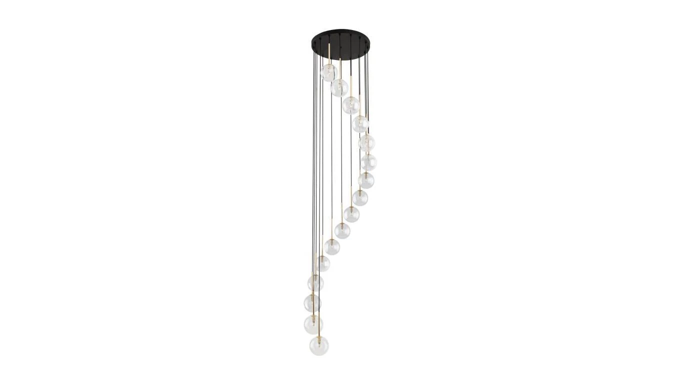 Lampa wisząca AURORA czarno-złota z 16 szklanymi transparentnymi kloszami 10182 TK Lighting