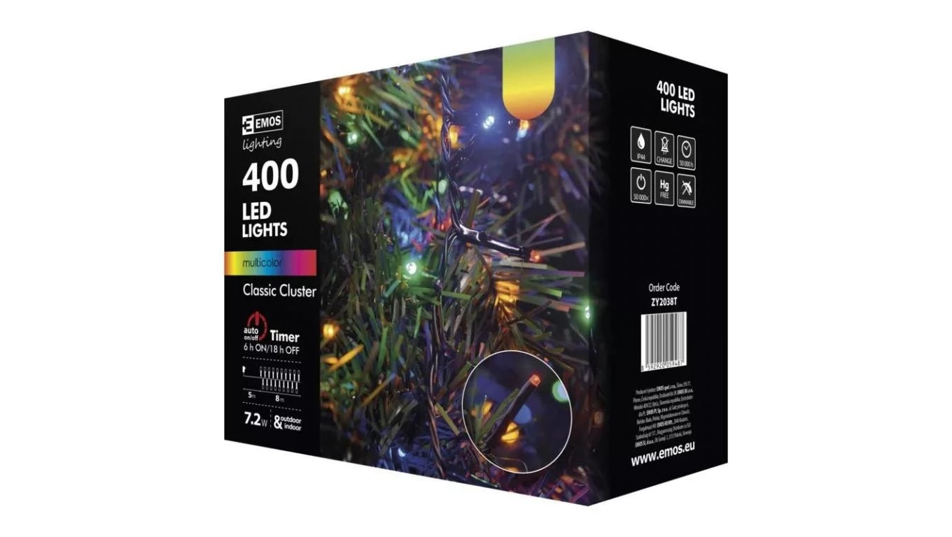 Lampki choinkowe 7,2W 400LED XMAS CLUSTER 8m MC IP44 multikolor ZY2038T