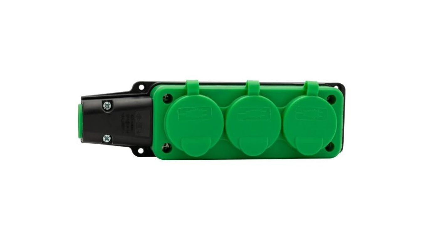 Listwa gumowa 3x230V 16A IP54 SCHUKO zielona