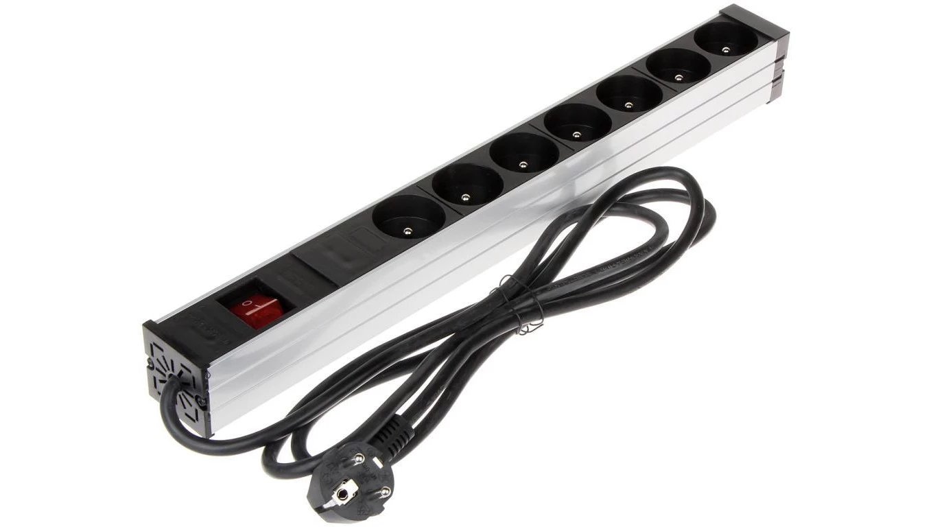 Listwa zasilająca 1U 19 7 gniazd wyłącznik kątowa