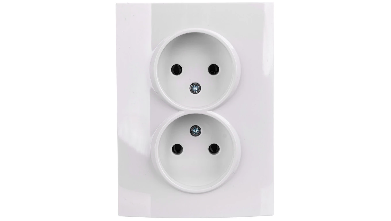 LOGI Gniazdo podwójne bez uziemienia kompletne śrubowy Biały 16A 250V 021280102 25096