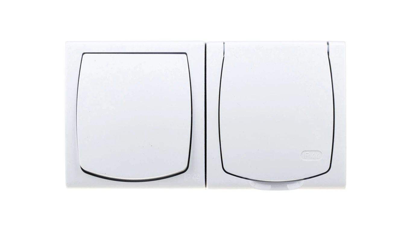 MADERA Łącznik hermetyczny pojedynczy + gniazdo hermetyczne pojedyncze z/u z klapką biały ZH-NŁ1G/00/w