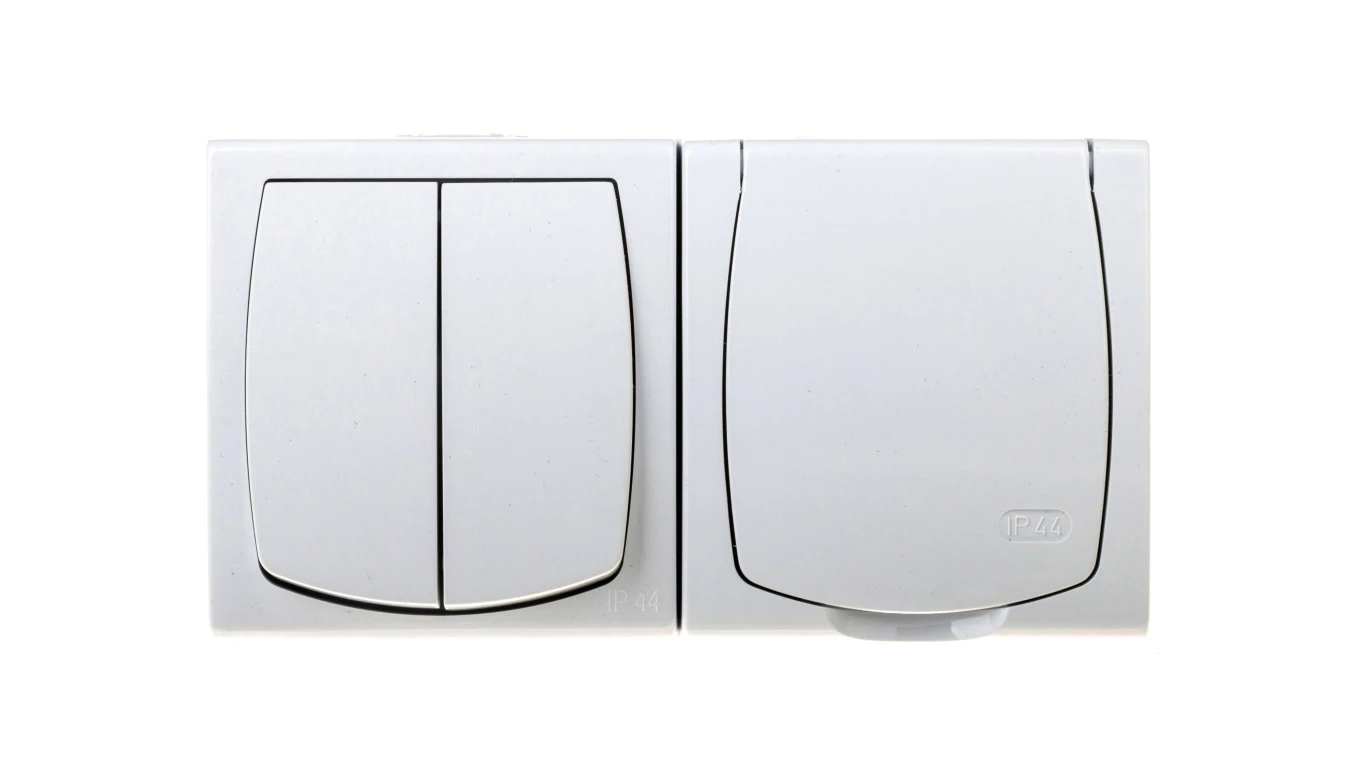 MADERA Łącznik hermetyczny świecznikowy + gniazdo hermetyczne pojedyncze z/u z klapką biały ZH-NŁ2G/00/w