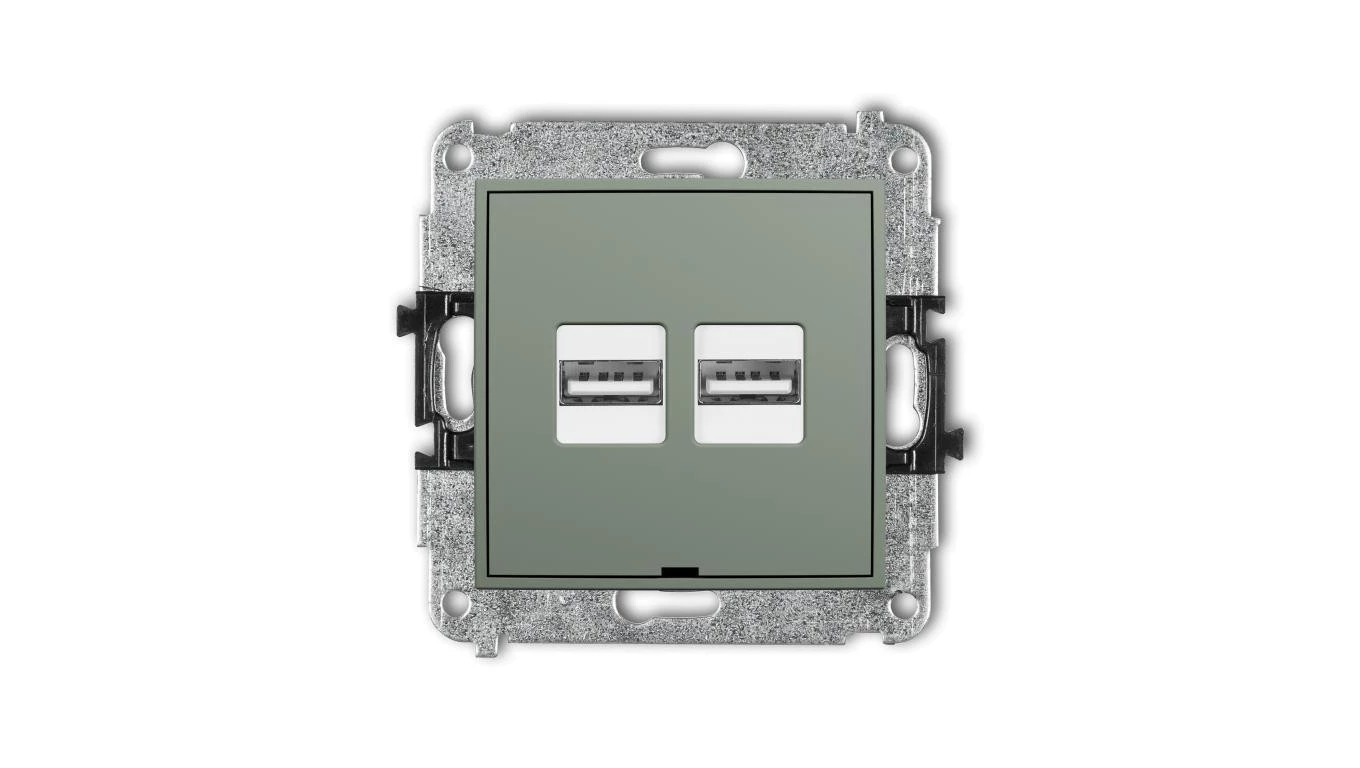 MINI Mechanizm ładowarki USB podwójnej 2xUSB A, 15,5W max., 5V, 3.1A, bez pola opisowego szałwiowy 61MCUSBBO-6