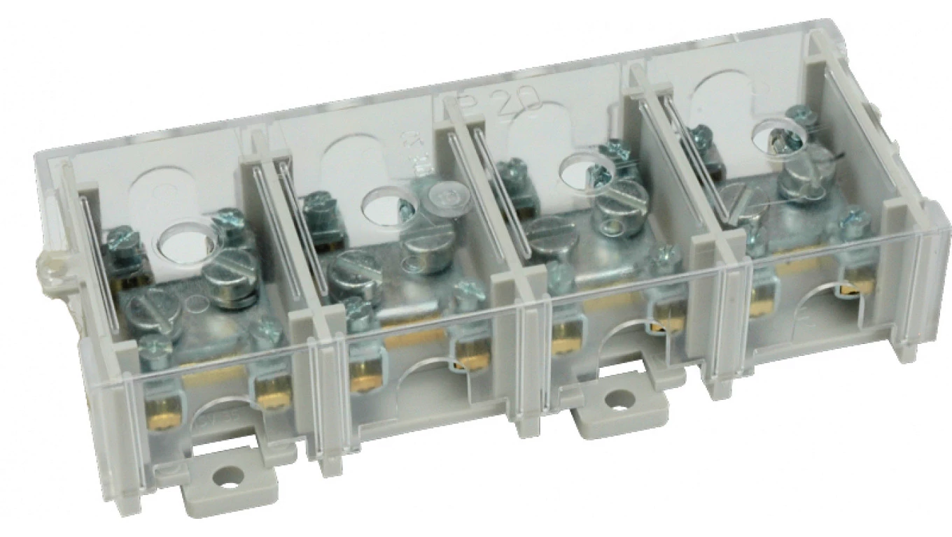 Odgałęźnik instalacyjny 4-torowy (1x25mm²/4x6mm²) LZ4*25/6P mocowanie do podłoża i TS 35, z pokrywą, szary 84171002