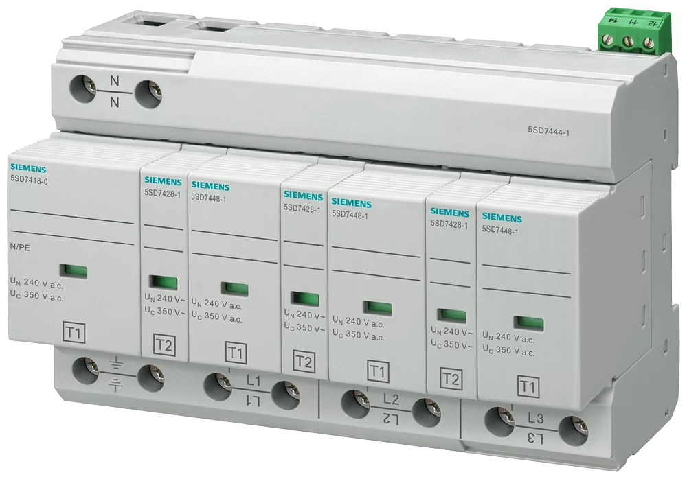 Ogranicznik przepięć B+C Typ 1+2 3P+N Uc 350V 25kA TN-S ze stykami sygn. SENTRON 5SD7444-1