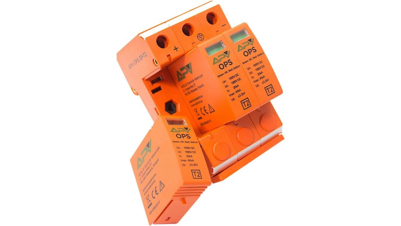 Ogranicznik przepięć fotowoltaiczny APV DC typ 2 C 3P 1000V 20kA 3,2kV ochronnik do paneli solarnych 1000V DC PV 20szt