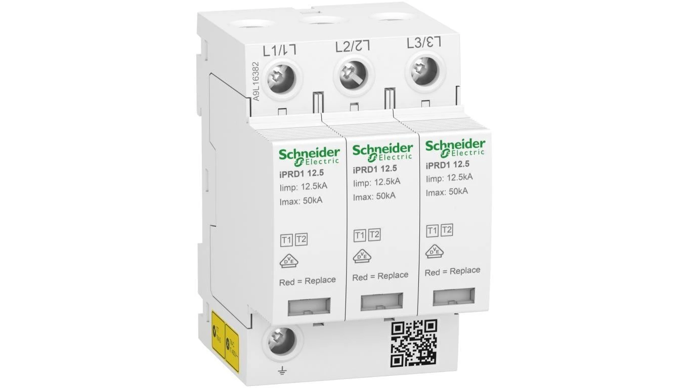 Ogranicznik przepięć iPRD1 12.5R-T12-3 3-biegunowy Typ 1+2 (klasa B+C) o numerze katalogowym A9L16382 w kategorii Ograniczniki przepięć typ 1+2, Ograniczniki przepięć. Produkt wyprodukowany przez markę SCHNEIDER ELECTRIC, seria IPRD12.5R.
