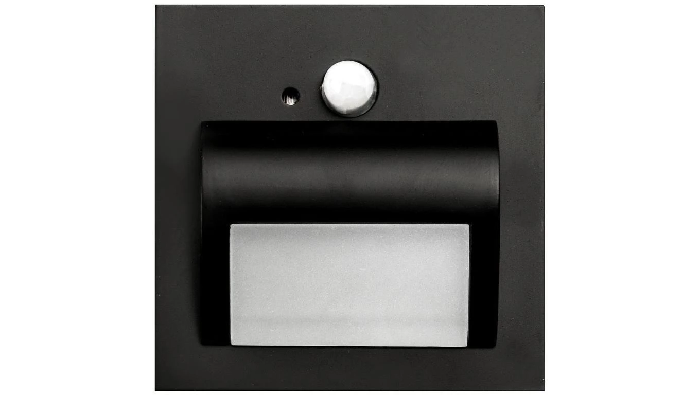Oprawa Beryl PIR czarna ciepła 3000K 1,5W 12V DC 9 led smd 3014 kwadrat do puszki fi 60 z czujką ruchu PIR