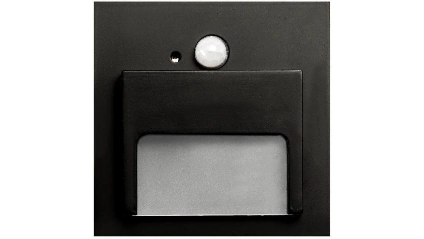 Oprawa Ontario PIR czarna 1,5W neutralna 12V DC 9 led smd 3014 kwadrat do puszki fi 60 z czujką ruchu PIR