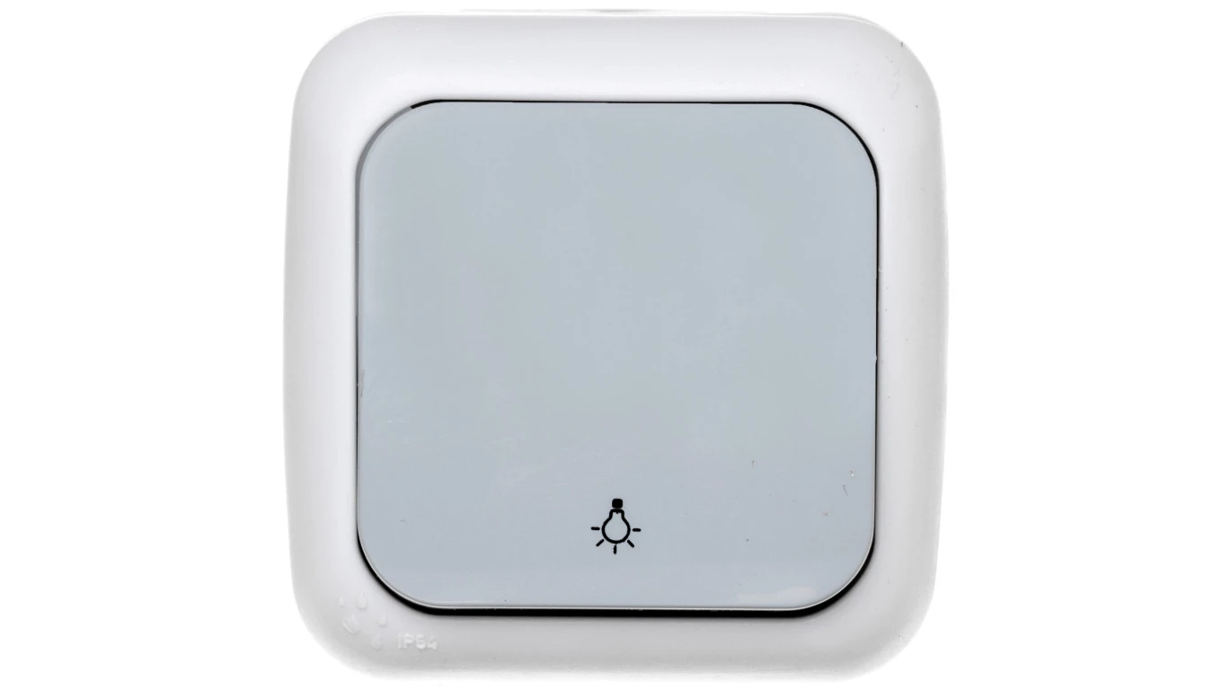 Łącznik zwierny z symbolem "ŚWIATŁO" IP54, szary PALMIYE o numerze katalogowym 90555503 w kategorii Przyciski natynkowe "światło", Przyciski "światło". Produkt wyprodukowany przez markę PANASONIC, seria PALMIYE.