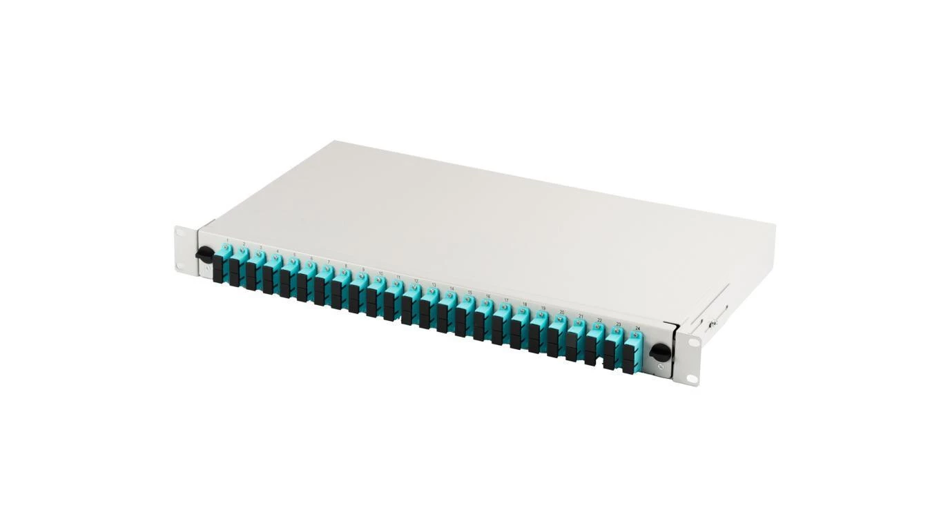 Panel krosowy FO z wyposażeniem 19 1U, 24x SC dx, OM3, adaptery, wysuwany, szary DN-96422/3