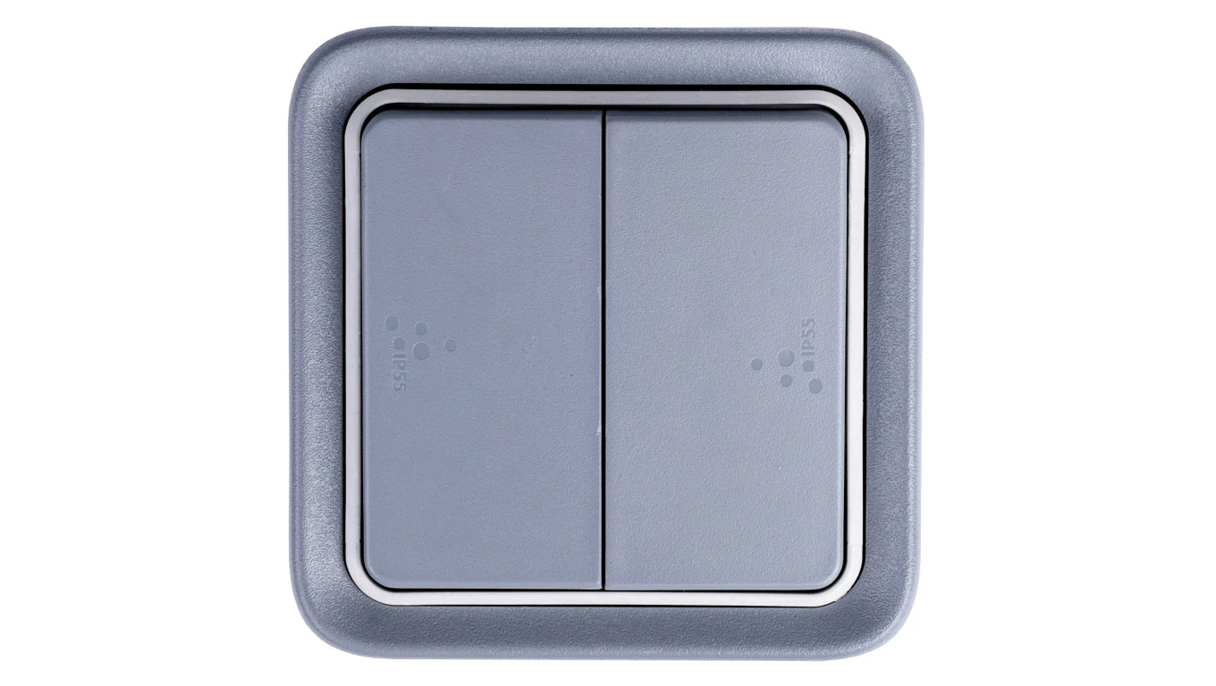 PLEXO55 Łącznik schodowy podwójny z puszką n/t szary 069715