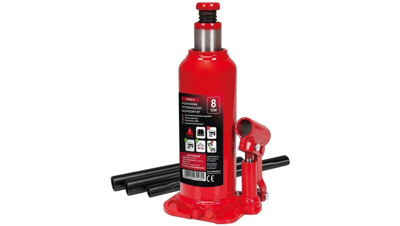 Podnośnik samochodowy hydrauliczny butelkowy słupkowy lewarek do 8 ton Schmith