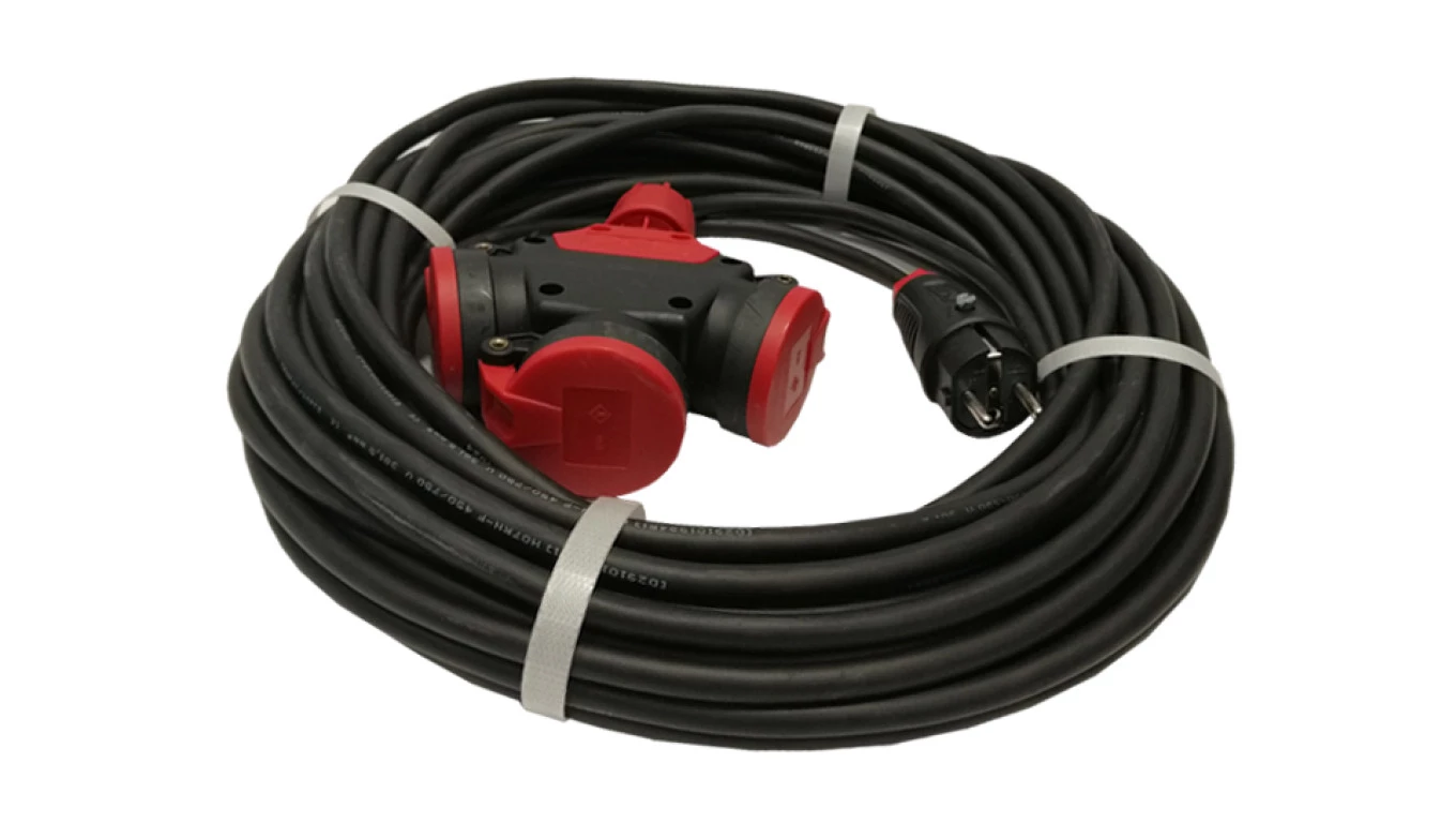 Przedłużacz budowlany jednofazowy elCORD 16A 230V IP44 20m H07RN-F 3G1,5 z wtyczką uni-schuko i potrójnym gniazdem 32125200