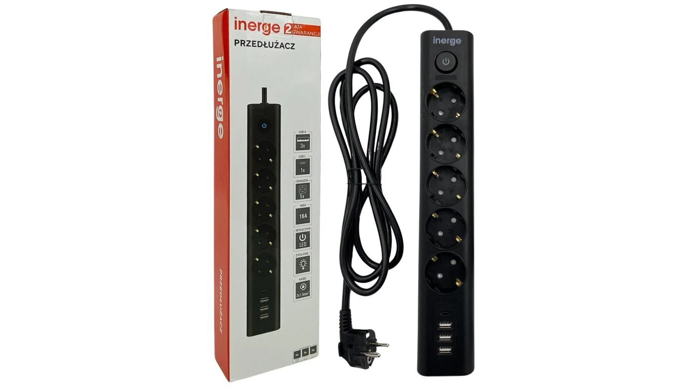 Przedłużacz INERGE 5-gniazdowy 2m ECS-0531-02-B
