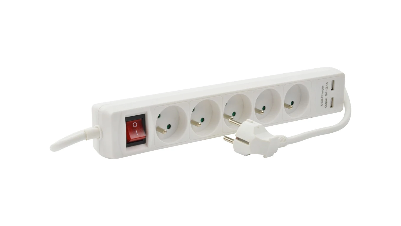 Przedłużacz prądowy 1,5m 5xGN + 2 USB z wył.