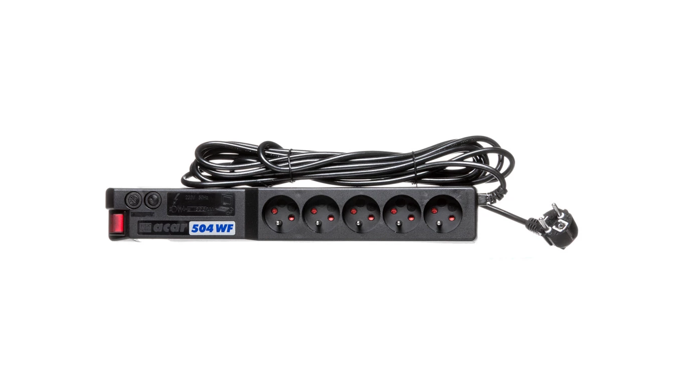 Przedłużacz przeciwprzepięciowy 5-gniazd z/u ACAR 504WF RACK 19 5m czarny