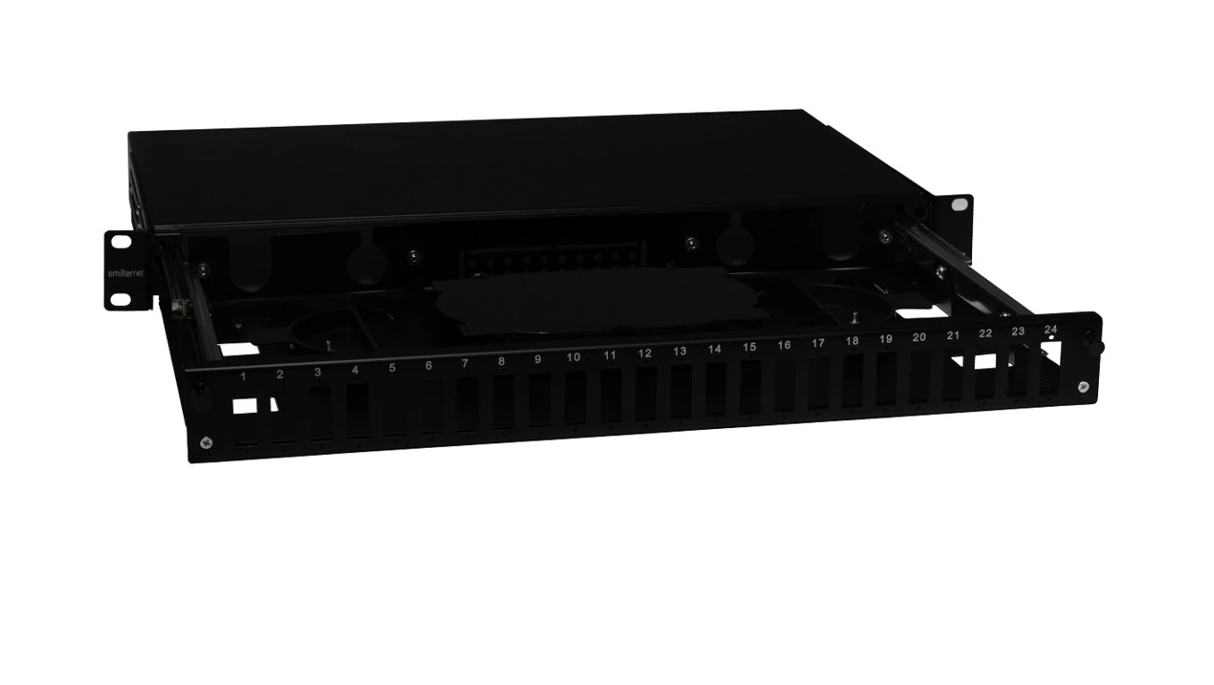 Przełącznica wysuwana 19 1U 24xSC duplex szara, teleskopowa, czarna