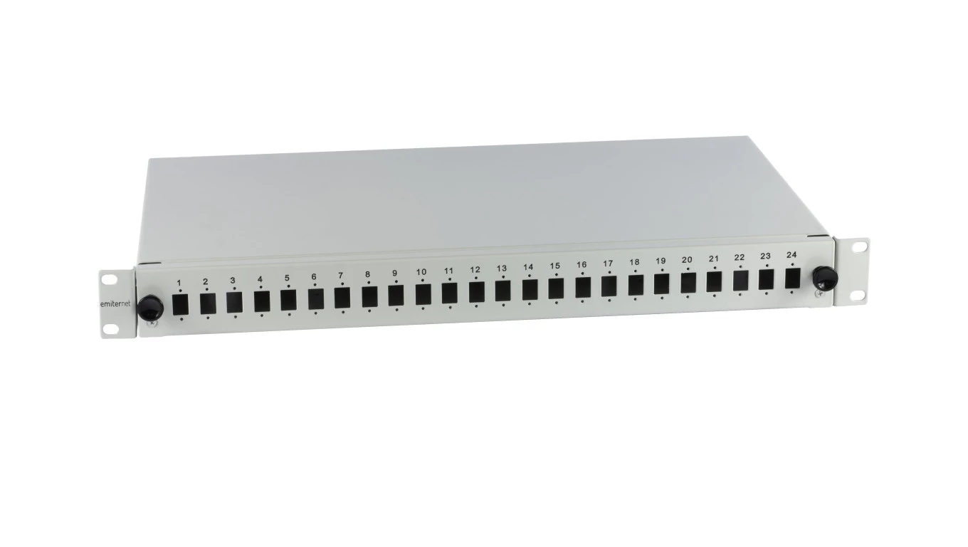 Przełącznica wysuwana 19 1U 24xSC simplex, szara w komplecie kasety światłowodowe na 24 wł. i dławiki EM/PS-1924SCS0-S
