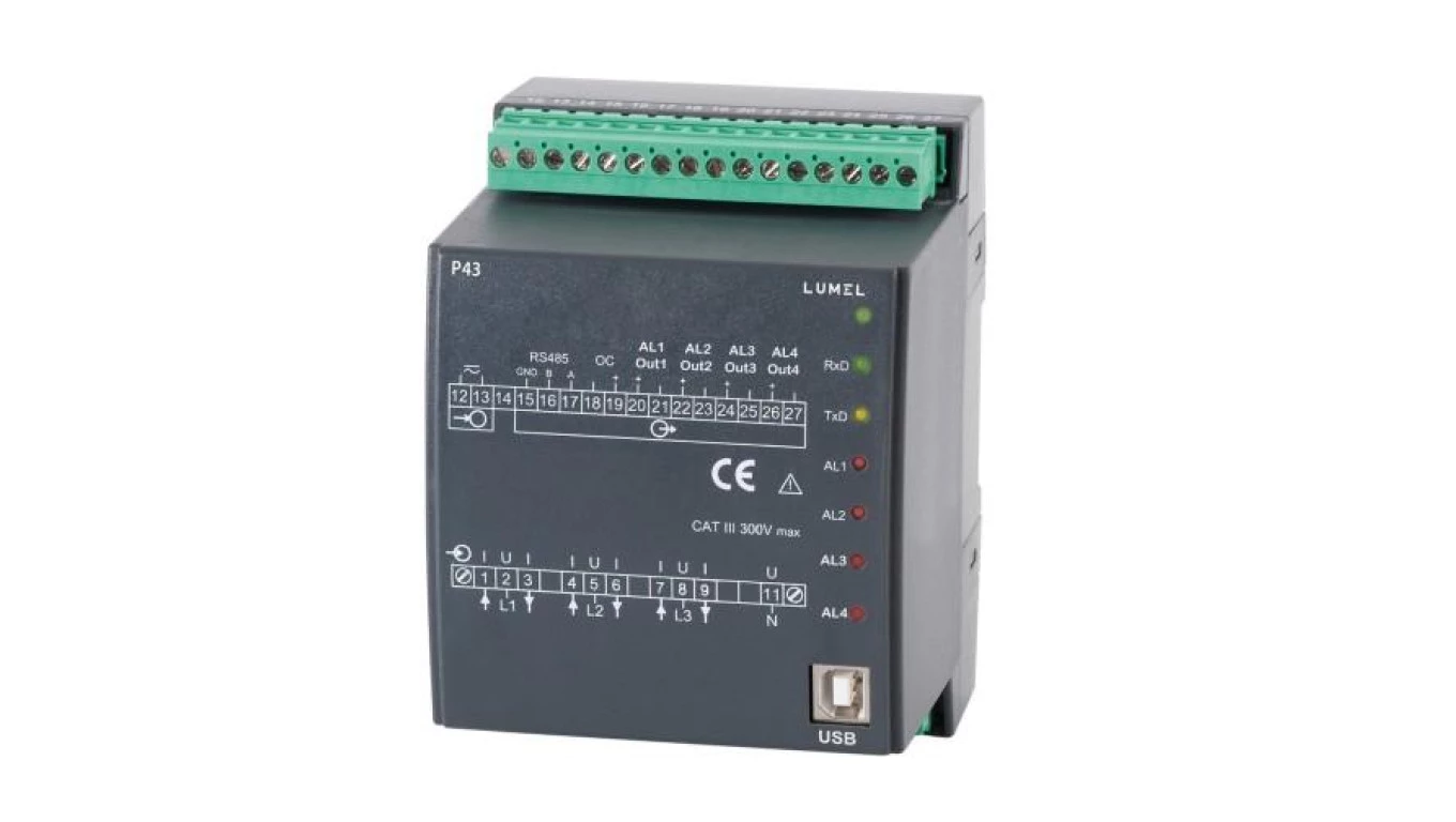 Przetwornik sieci 3-fazowej 2:we I 5A(X/5) 1:we U 3 x 57,7/100V 1:zas. 85-253Vac, 90-320Vdc 1:bez wyj. analog. P43 211100M0