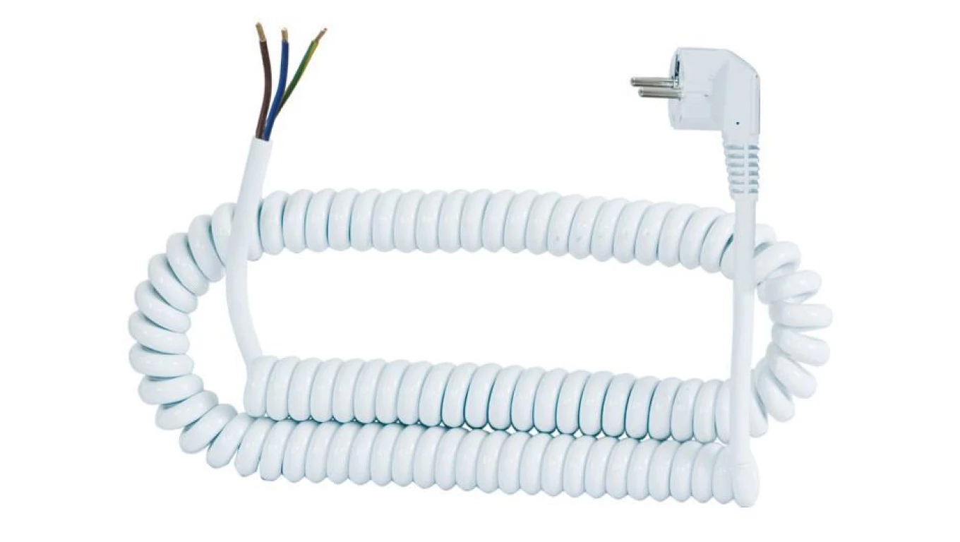 Przewód spiralny - wtyczka kątowa 05VVH8-F - 3x1,5mm2 - 5m - biały