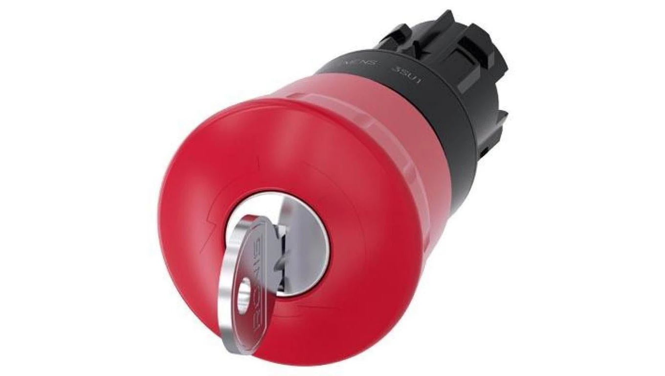 Przycisk bezpieczeństwa 22mm z zamkiem Ronis nr 455 tworzywo czerwony 40mm 2 klucze IP69k SIRIUS ACT 3SU1000-1HF20-0AA0