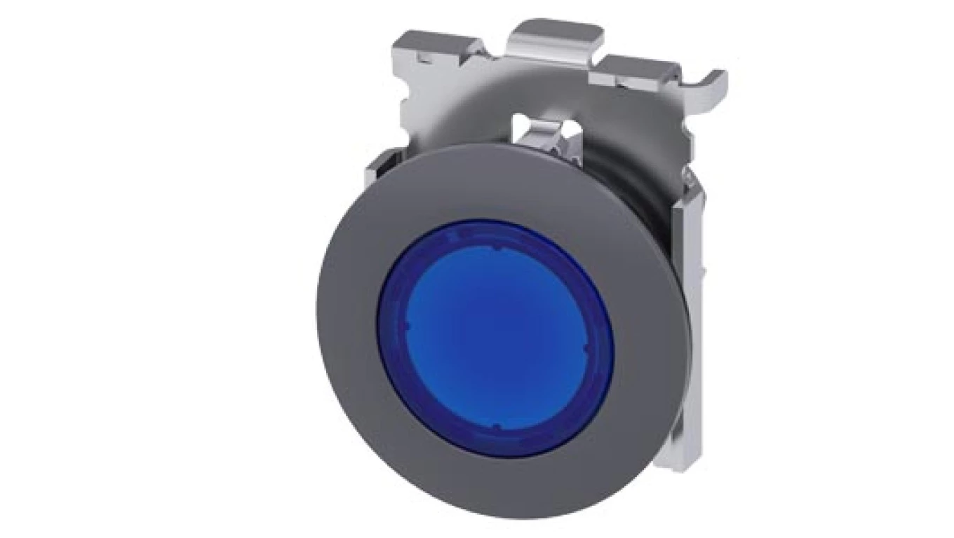 Przycisk podświetlany 30mm okrągły metal matowy niebieski pierścień płaski z samopowrotem 3SU1061-0JB50-0AA0