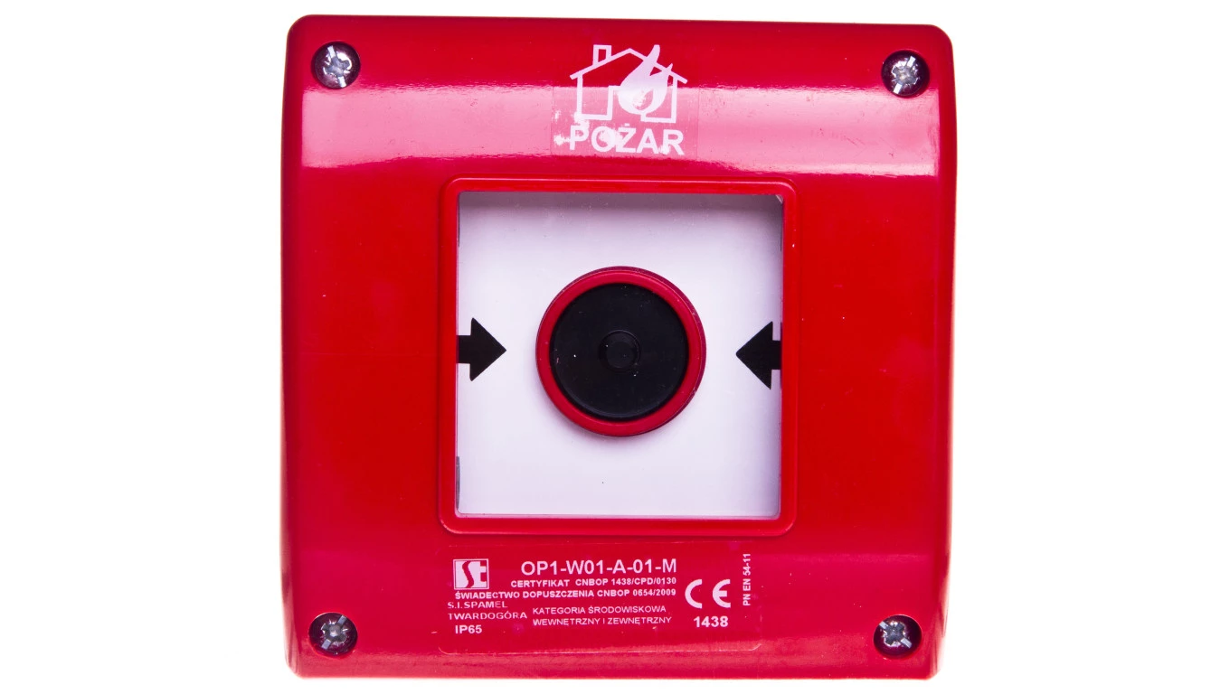 Przycisk pprzeciwpożarowy natynkowy 1R czerwony z młotkiem OP1-W01-A01-M