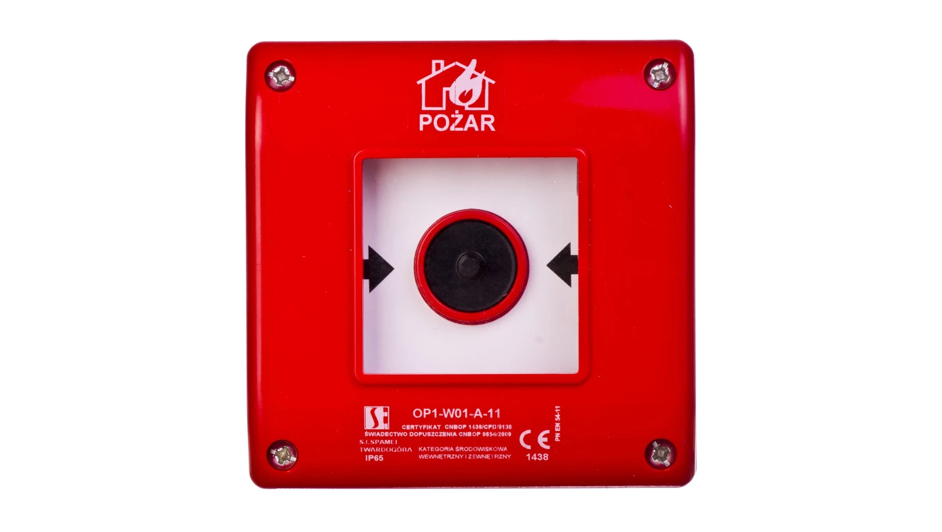 Przycisk przeciwpożarowy natynkowy ROP IP65 OP1-W01-A-11