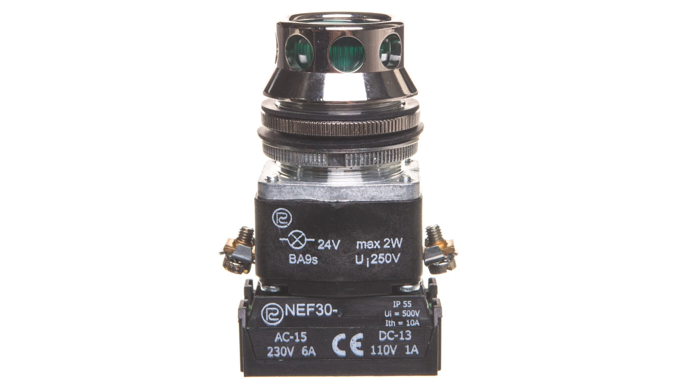 Przycisk sterowniczy 30mm zielony z samopowrotem z podświetleniem 2Z 24V W0-NEF30-KL 2X Z