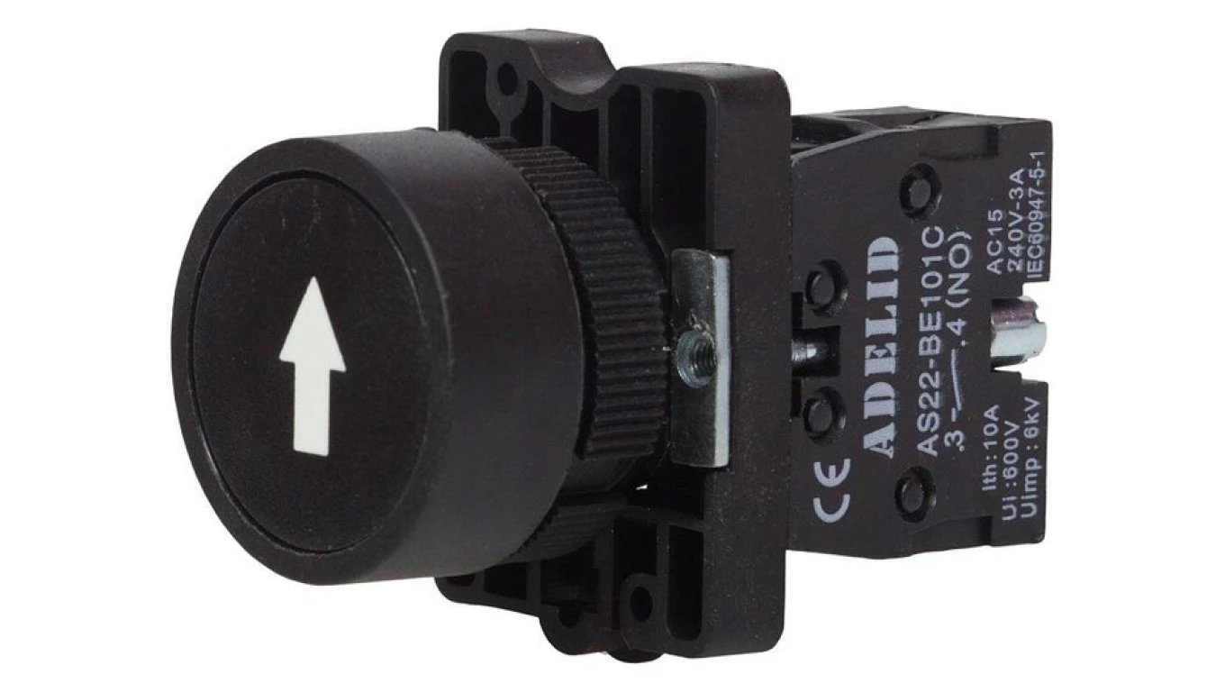 Przycisk sterowniczy czarny z białą strzałką plastikowy AS22-EA3351