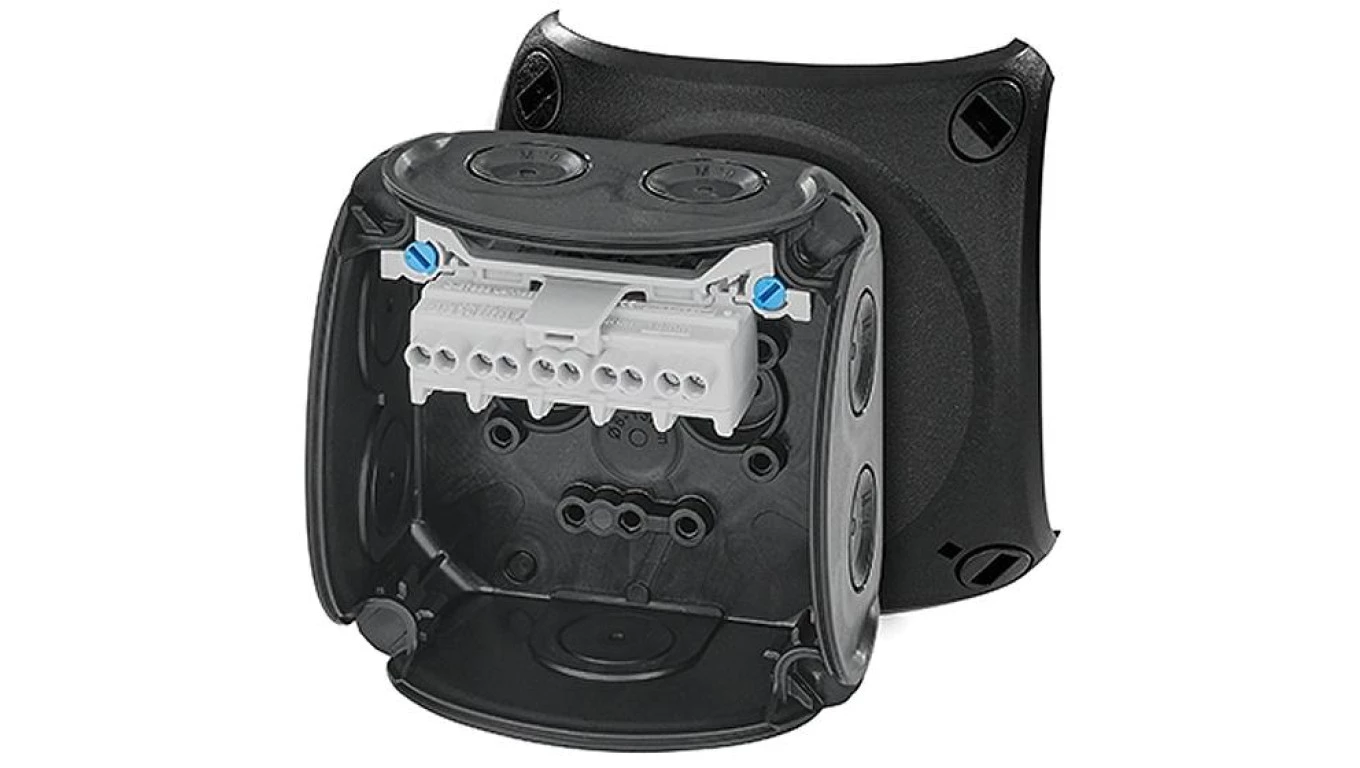 Puszka odgałęźna do instalacji wewnętrznych czarna IP66 z dławnicami membranowymi 5x2,5 mm2 Cu DK 0202 B 62000296