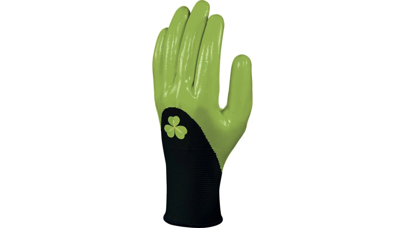 RĘKAWICA DZIANA Z POLIESTRU, POWŁOKA NITRYLOWA NA STRONA CHWYTNEJ I DO POŁOWY STRONY GRZBIETOWEJ
