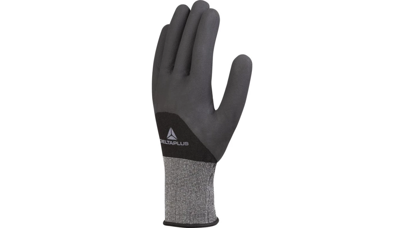 RĘKAWICA DZIANA Z POLIESTRU/SPANDEX - POWŁOKA NITRYLOWA NA STRONA CHWYTNEJ I DO POŁOWY STRONY GRZBIETOWEJ Z KROPKAMI - ŚCIEG 15