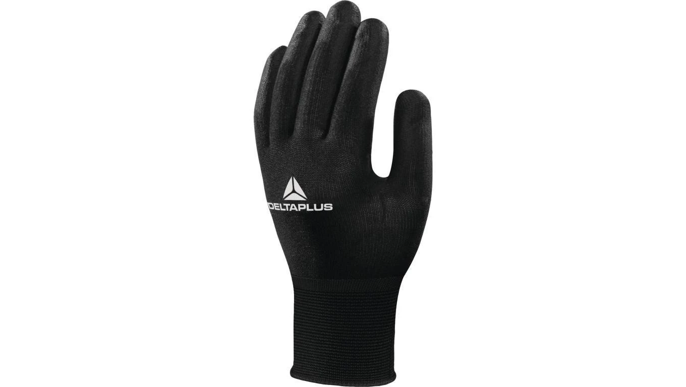Rękawice dziane z poliamidu (100) dłoń powlekana poliuretanem ścieg 15 kolor czarny rozmiar 9 MAIN VV702NO09