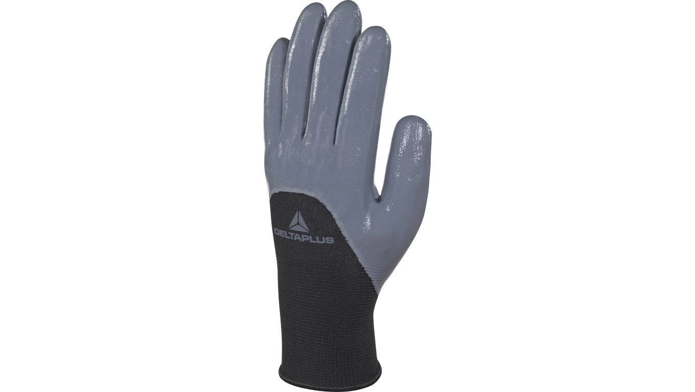 Rękawice dziane z poliestru (100) dłoń palce i połowa strony grzbietowej powlekane nitrylem ścieg 13 kolor czarno-szary rozmiar