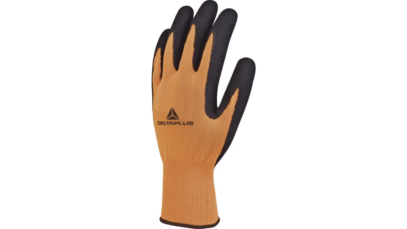 Rękawice dziane z poliestru fluorescencyjnego strona chwytna z pianki lateksowej czarno-pomarańczowe rozmiar 8 APOLLON VV733OR08