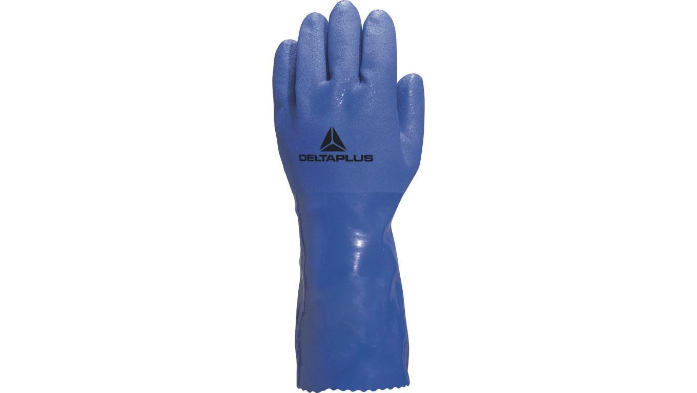 Rękawice z PVC na wkładzie z dżerseju odporne na węglowodory dł. 30 cm kolor niebieski rozmiar 10 MAIN VE780BL10